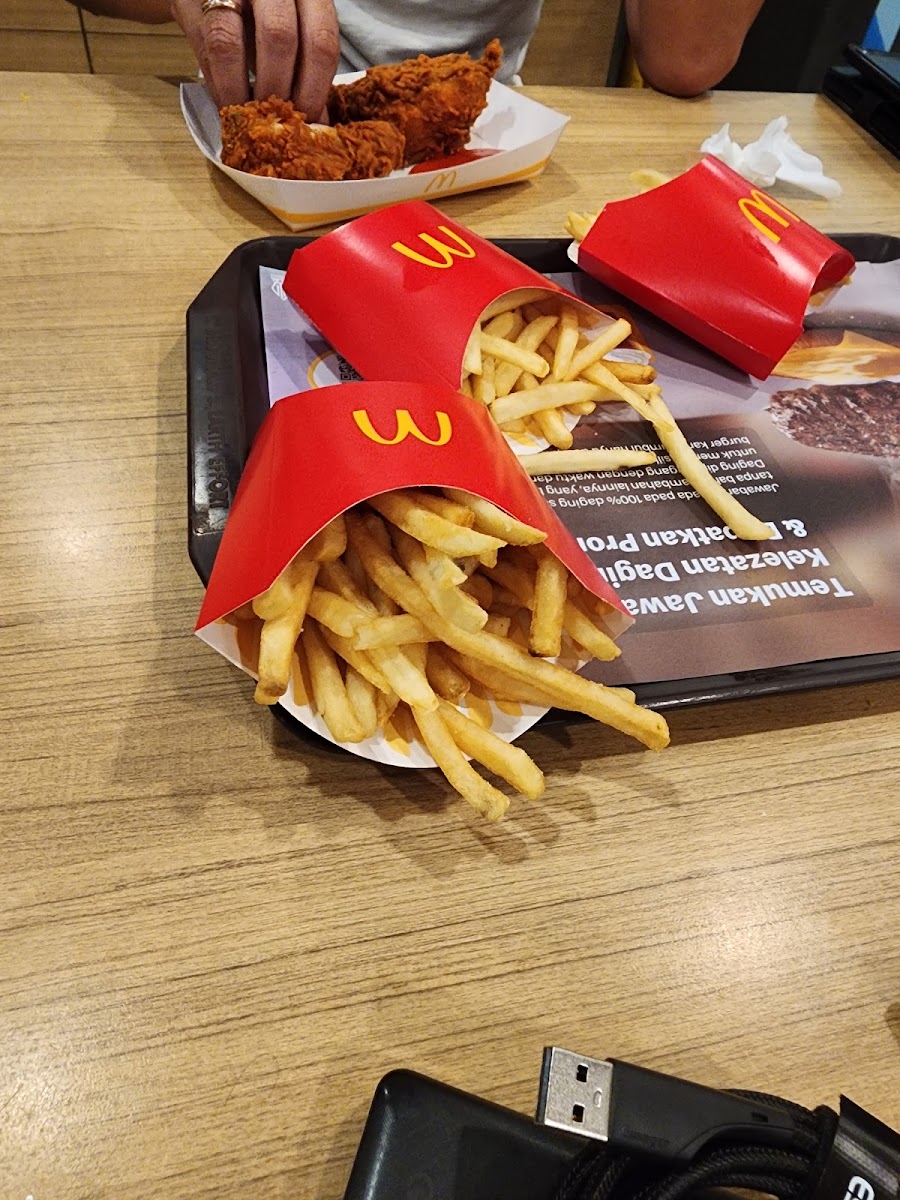 Just like standard McDonald's. The place is clean, they accept promo offer on the apps. You need to scan Pedulilindungi barcode prior to entering the store. The staff were polite and informative. The store has 2nd floor, but when i was there the AC isn't turned on, so it's quite hot on there.